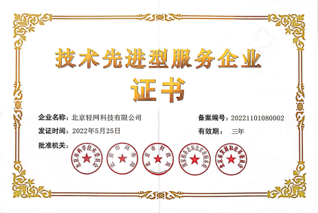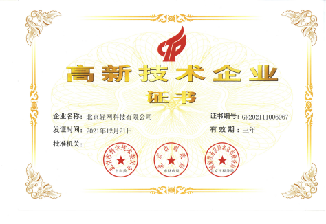 轻网科技是国家高新技术企业和北京市技术先进型服务企业。
